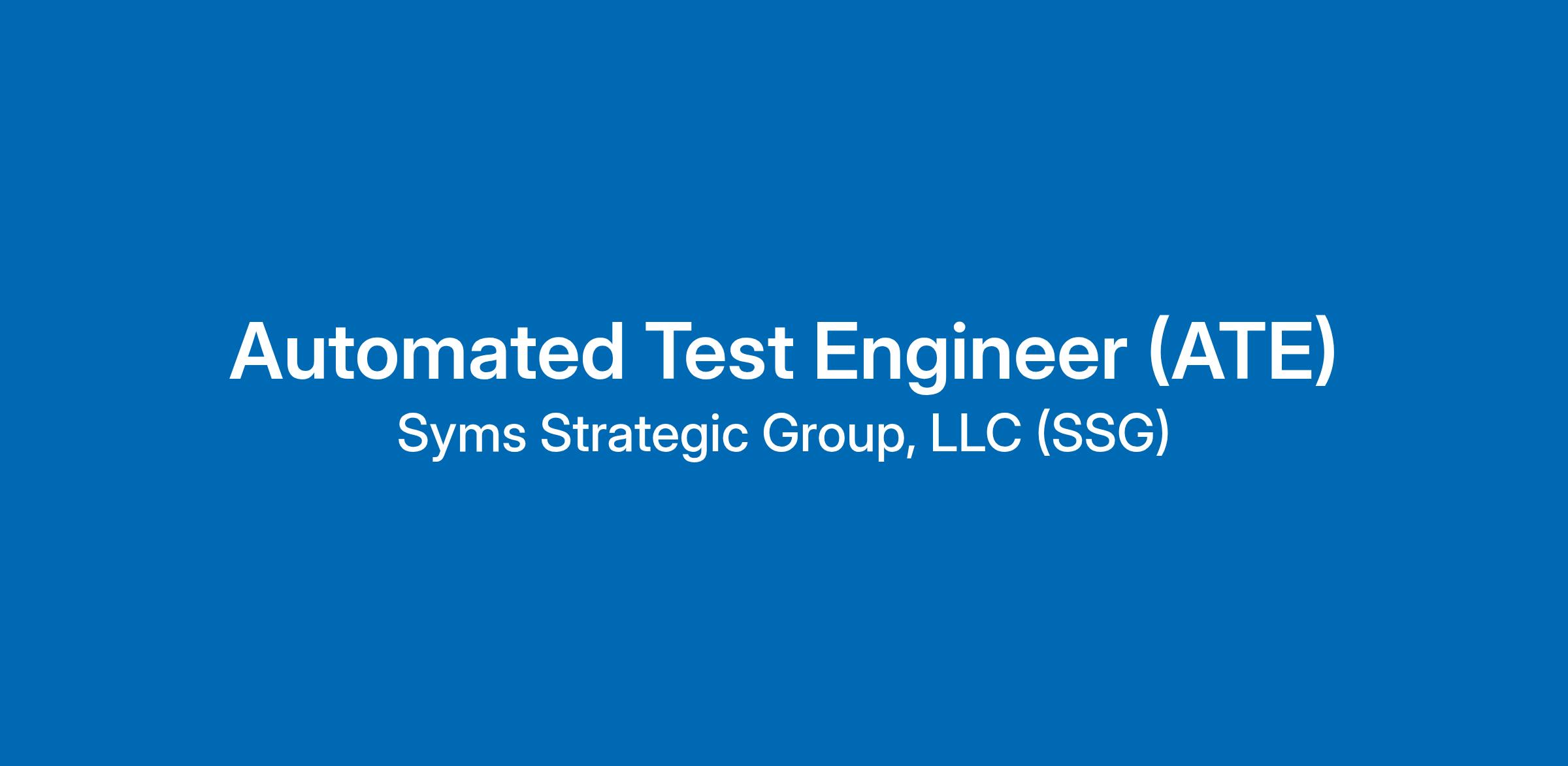 Syms Strategic Group (SSG) is seeking a talented Automated Test Engineer (ATE)