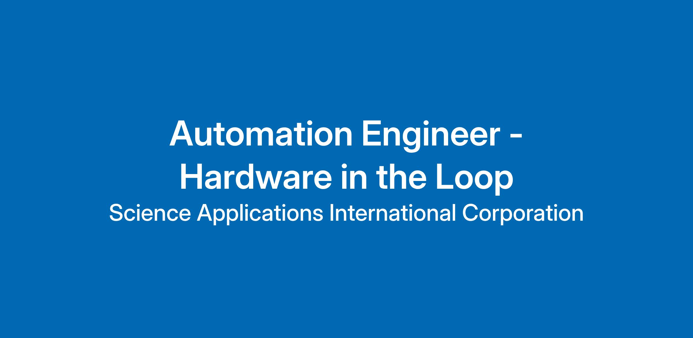 SAIC Engineering Innovation Factory has an opening for a Hardware in the Loop Automation Engineer.