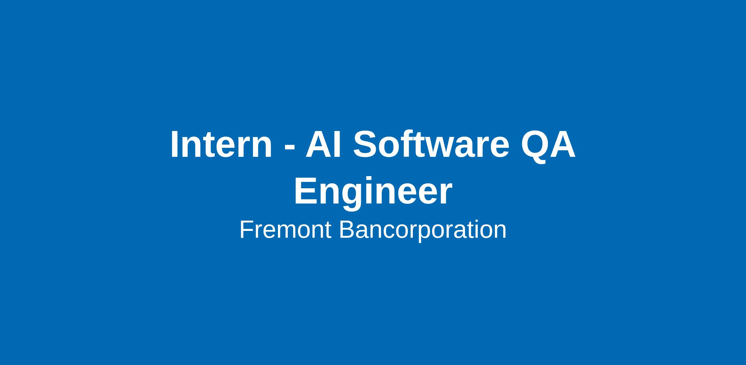 AI Software QA Engineer Intern will work with Fremont Bank’s Quality Assurance