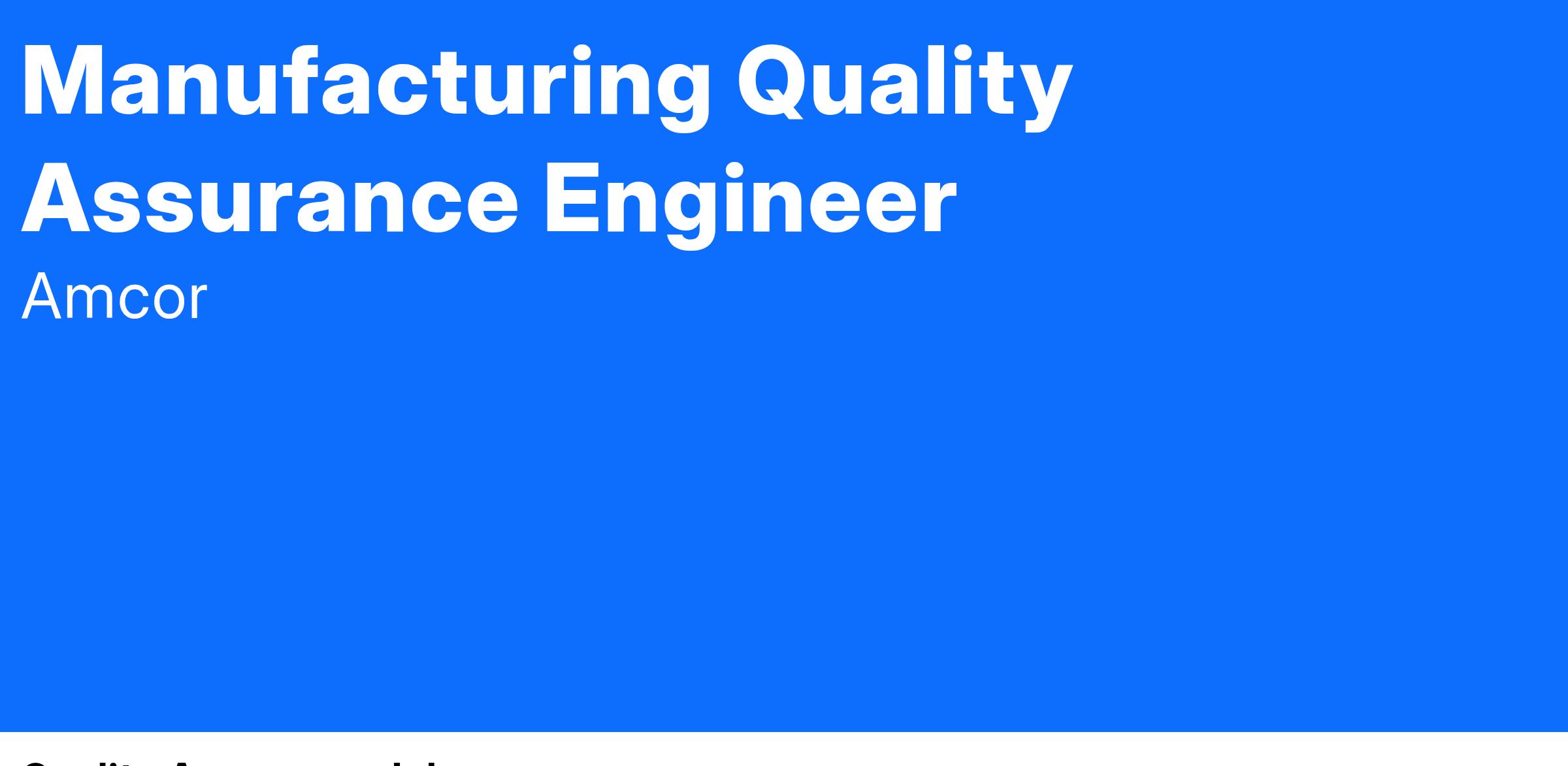 Amcor is an Equal Opportunity Employer and all qualified applicants will receive consideration for employment without regard to race, color, religion, sex, sexual orientation, gender identity, national origin, disability status, protected veteran status, or any other characteristic protected by law.