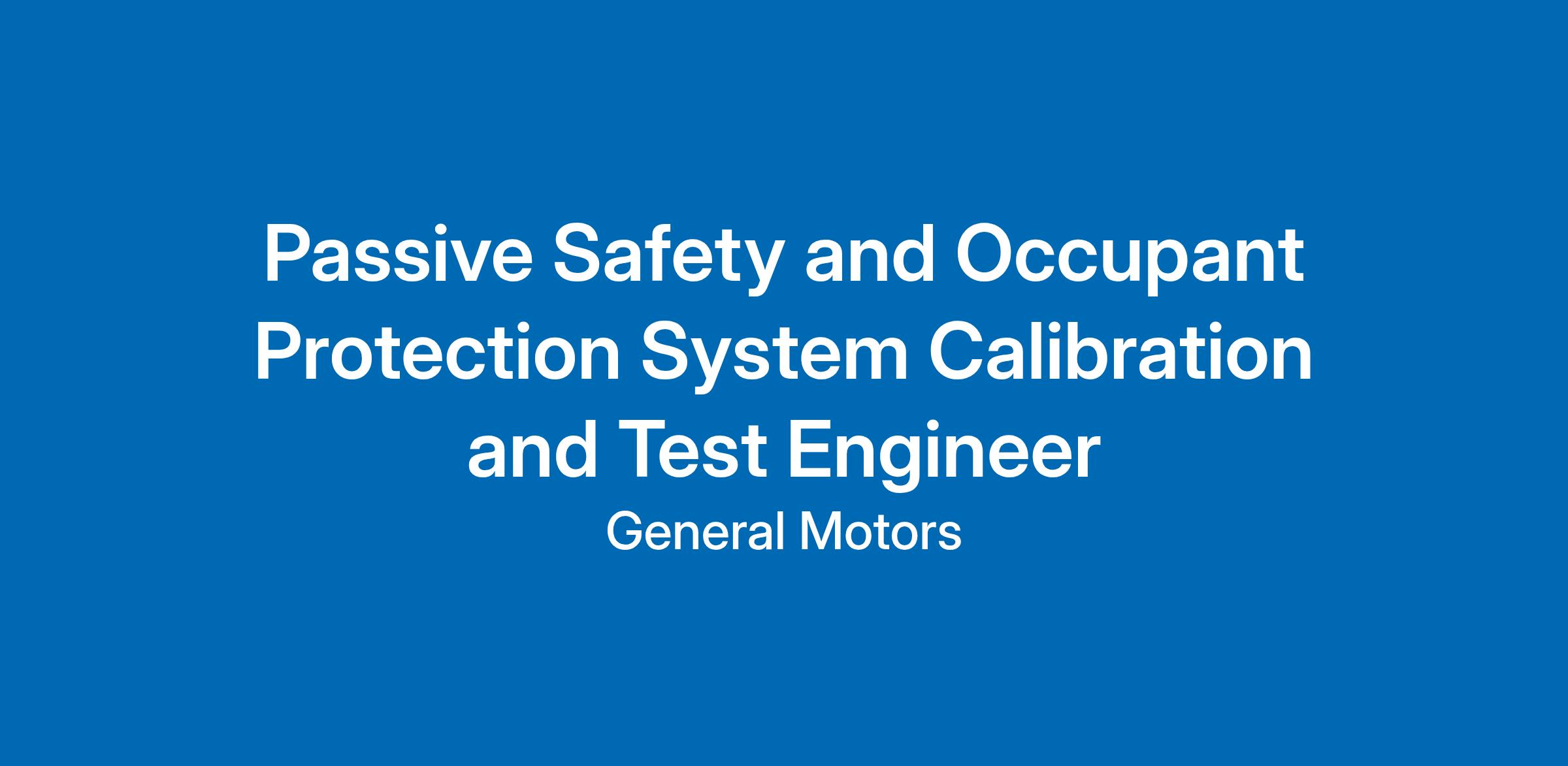 The Passive Safety and Occupant Protection System Calibration and Test Engineer will: