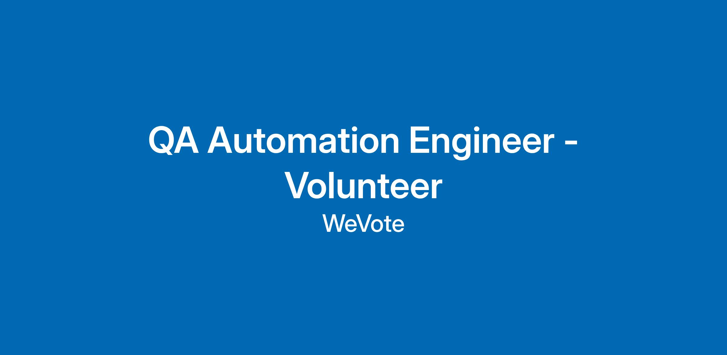 WeVote has several open volunteering positions for QA Automation Engineers to help strengthen American Democracy via our Web and Mobile applications. These are long-term, VOLUNTEER opportunities with an Oakland, CA-based non-profit organization. It is expected that you will commit to no less than 6 hours per week for the next six months.