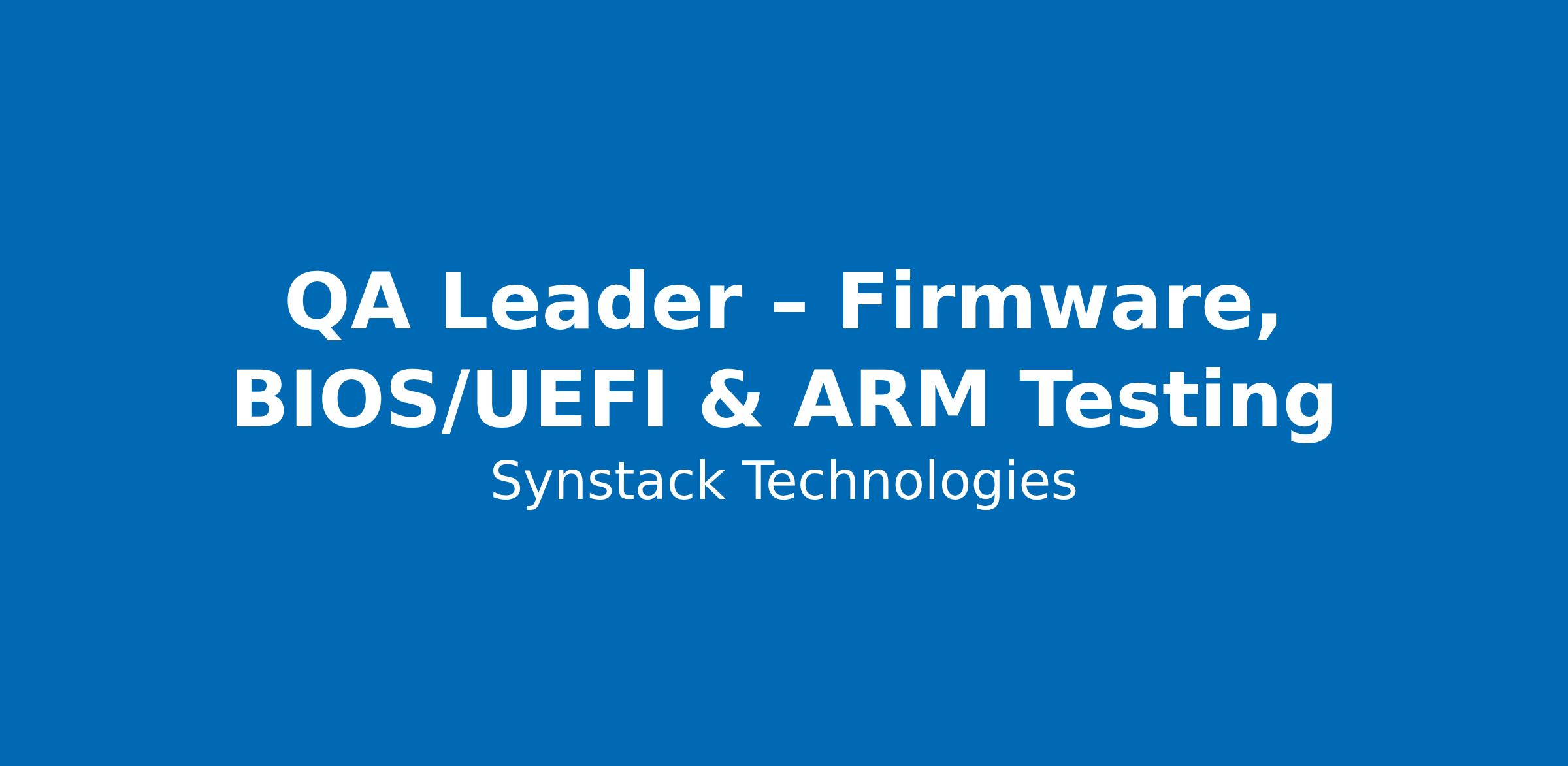 - Minimum 15 years of experience in QA, including Firmware/BIOS/UEFI testing, ARM/x86 systems, and Engineering Management.