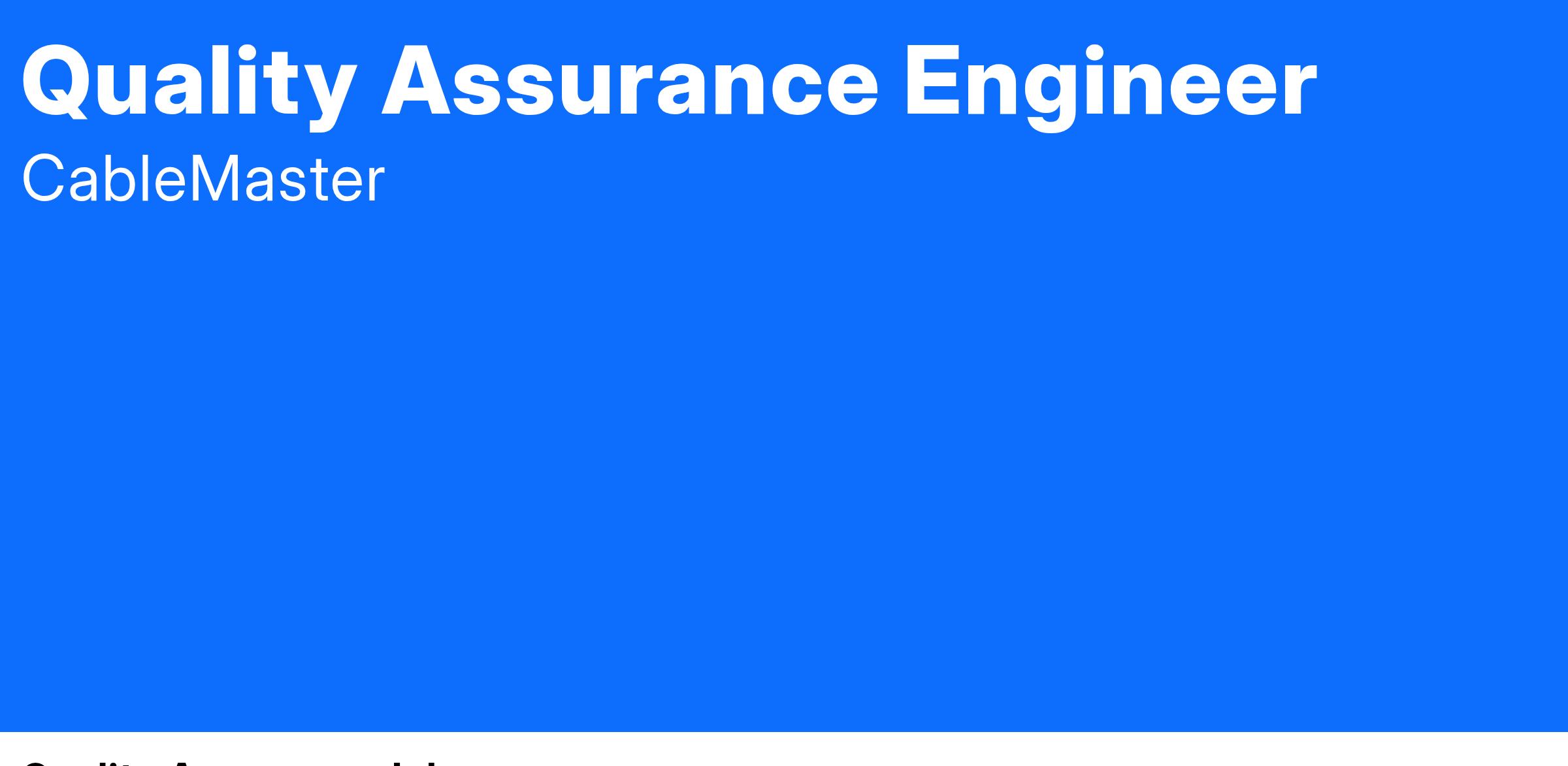The Quality Assurance Engineer at CableMaster LLC, a leading manufacturer and distributor of wire and cable products serving the OEM market, is a key member of the quality and production team. This position holds significant responsibility for ensuring that all products meet stringent quality standards. A quality assurance engineer promotes the quality of a company's products or services. A quality assurance engineer collaborates with cross-functional teams to develop and maintain quality standards, provide training to employees, identify areas for improvement, and analyze data. They also conduct audits and inspections to identify non-conformances and implement corrective actions as needed.