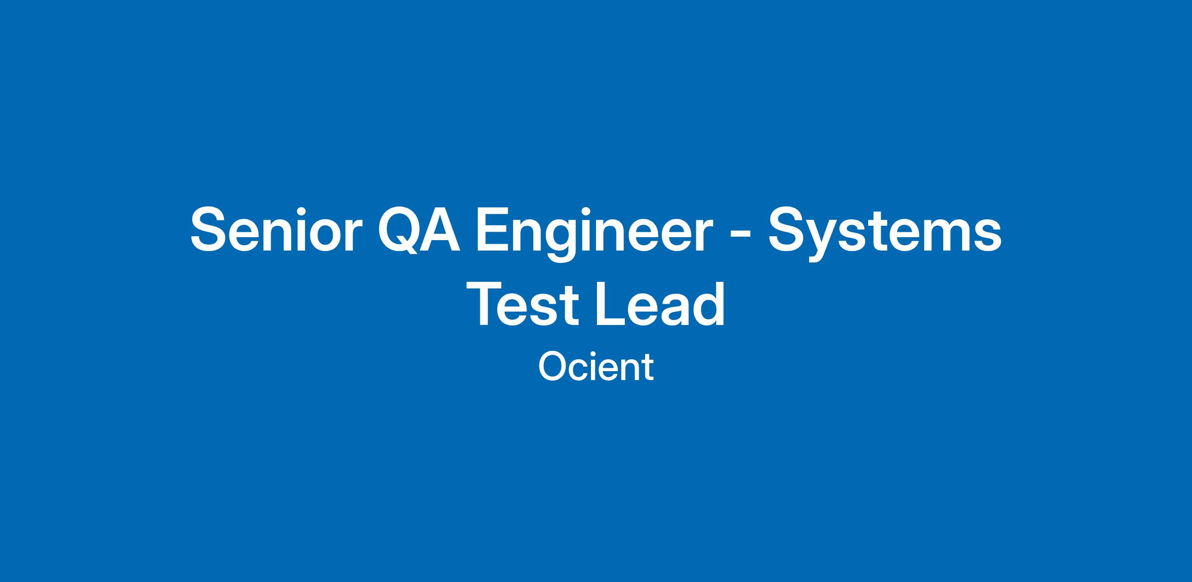 Job Title: Senior QA Engineer - Systems Test Lead