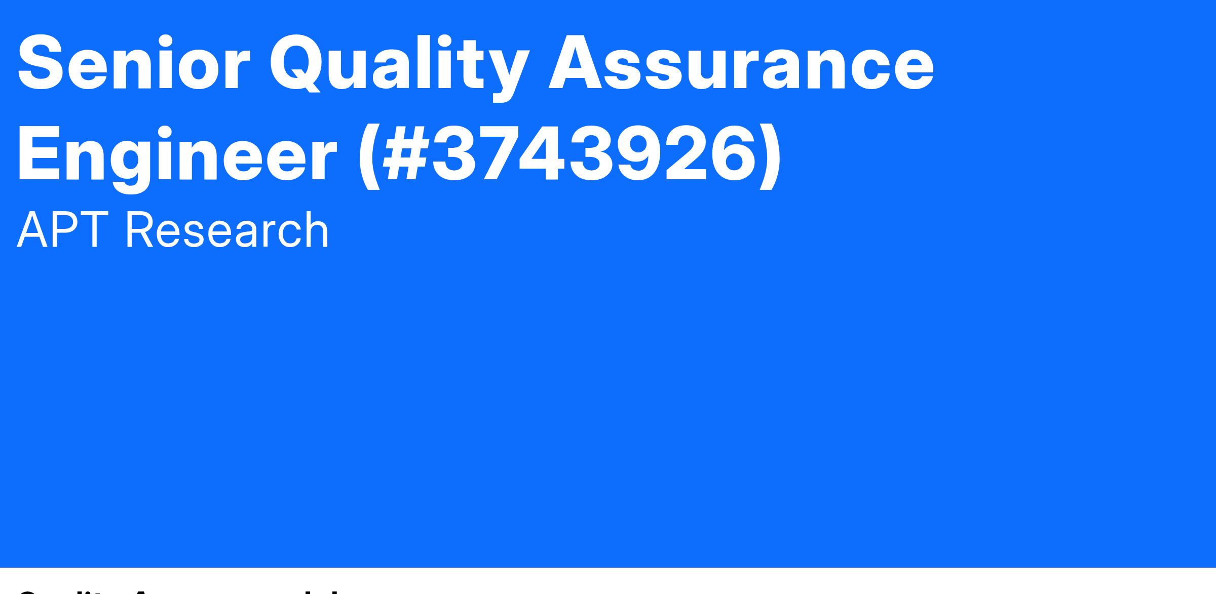 APT Research is hiring a Quality Assurance Engineer to support NASA Safety & Mission Assurance audits, assessments, and analysis (SA3). This effort covers surveillance and inspection activities, including planning, witnessing, and reporting actions and commendations.