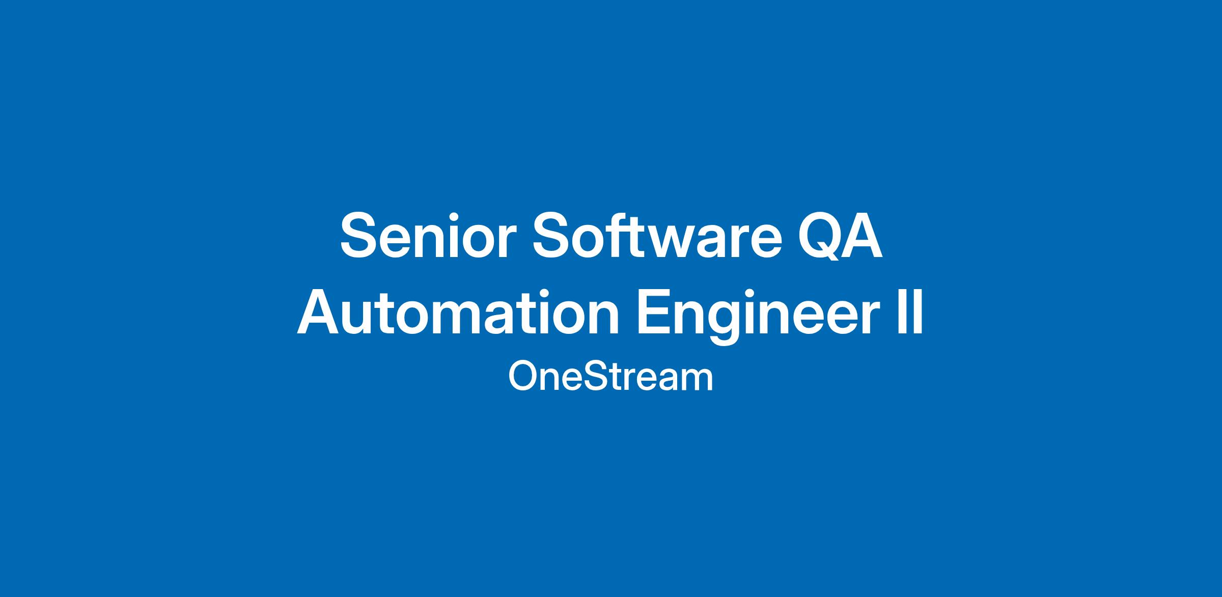 The Senior QA Automation Engineer II is a senior individual contributor responsible for owning and curating team-level automation as part of OneStream’s Quality Engineering strategy. This role focuses on designing risk-aligned, maintainable, and meaningful automated checks that support continuous delivery and informed release decisions.