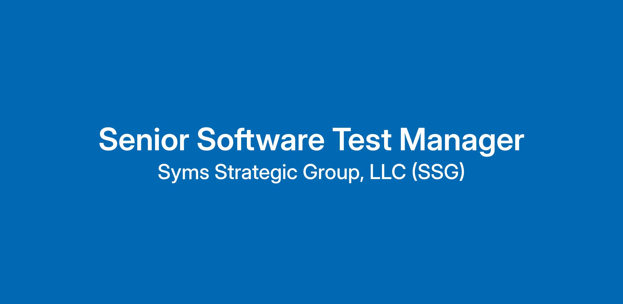 Senior Software Test Manager Location: Remote