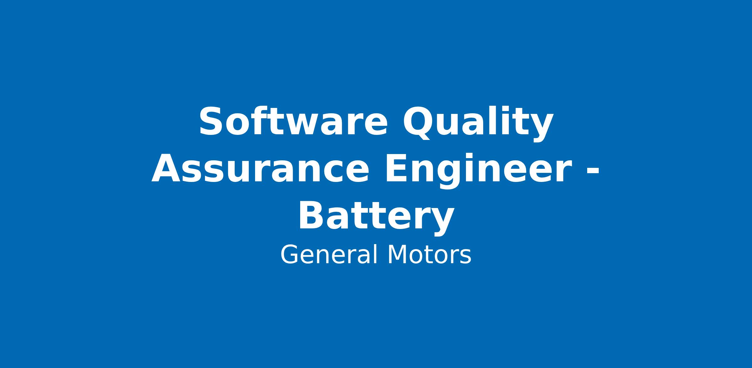 Job Description The Role The Electrification Solutions New Markets (ESNM) organization within Vehicle Mechatronic Embedded Controls, (VMEC), has an opening for a Software Quality Assurance Engineer (SQAE). ESNM is a start-up within VMEC that focuses on battery management, inverter, and electric motor solutions for non-automotive or unique automotive products. In this role, you will directly impact GM's strategy to expand into new markets such as Autonomous Manufacturing, Mobile Power Generation Systems, Stationary Energy Storage Systems, Specialty Vehicles, Watercraft, and Locomotives! We are seeking creative, highly motivated, agile thinkers with great attention to detail.