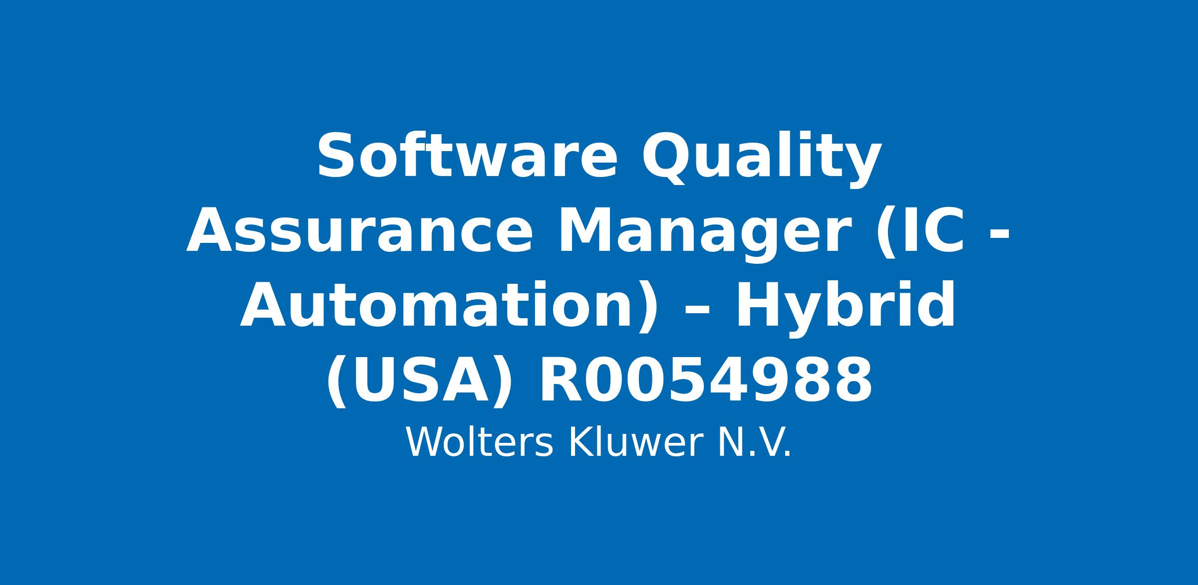 Manage and lead a team of QA professionals. - Develop and implement comprehensive test strategies. - Oversee the execution of automated and manual testing. - Ensure the timely identification and resolution of defects. - Collaborate with cross-functional teams to improve product quality. - Define and monitor quality metrics and key performance indicators. - Conduct performance reviews and provide career development opportunities. - Ensure compliance with industry standards and best practices. - Drive continuous improvement initiatives in QA processes. - Prepare and present quality reports to senior management. Additional Information:Wolters Kluwer offers a wide variety of competitive benefits and programs to help meet your needs and balance your work and personal life, including but not limited to: Medical, Dental, & Vision Plans, 401(k), FSA/ HSA, Commuter Benefits, Tuition Assistance Plan, Vacation and Sick Time, and Paid Parental Leave. More details at the following link: ?? Company ...Quality Assurance, Manager, Assurance, Software, Automation, Quality, Technology