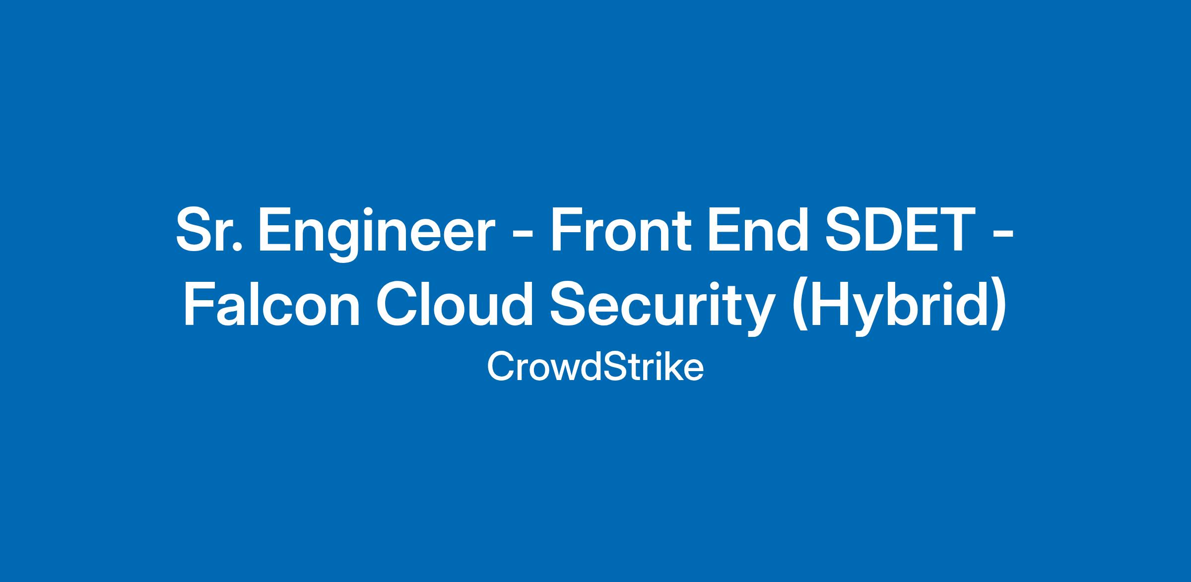 CrowdStrike is looking for a Senior Engineer (UI SDET) with a passion for quality specializing in Web UI test automation and strong manual testing skills. We're looking for smart people who want to be challenged to take ownership of what they build and work in an environment where quality is the company culture. As a UI SDET, you will be working closely with UI Engineers, UI Test Framework Engineers, and other SDETs to ensure optimal testing and release of the highest quality product. CrowdStrike values quality and a great customer experience. We are looking for meticulous Engineers with a strong testing focus and background, who focus on the customer experience, and that can bring insights throughout the development process.