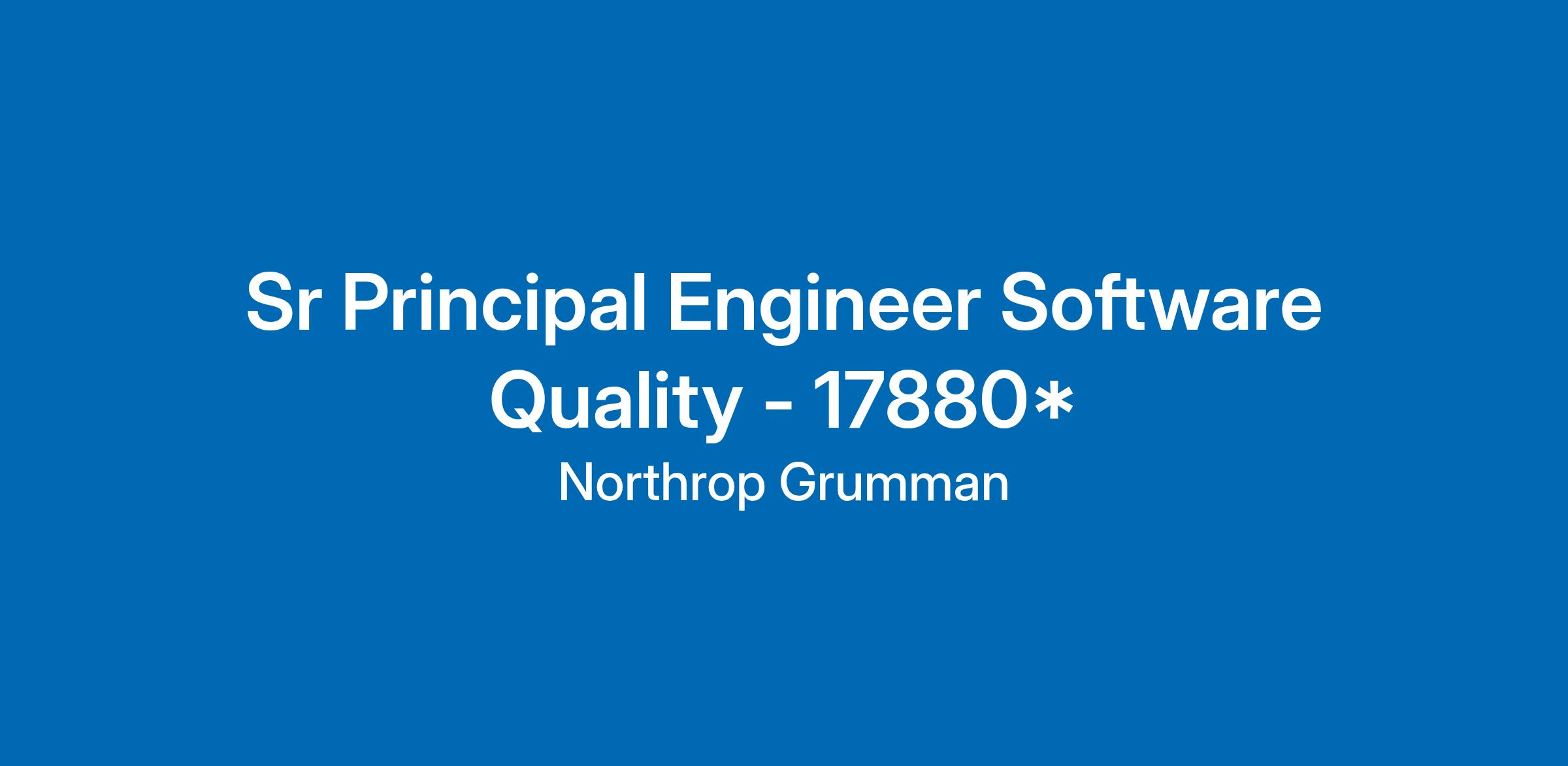 Northrop Grumman Defense Systems is seeking a Sr Principal Software Quality Assurance Engineer. This position will be located in Roy, UT; Colorado Springs, CO and or Huntsville, AL and will support the Sentinel (GBSD) Ground Base Strategic Deterrent program.