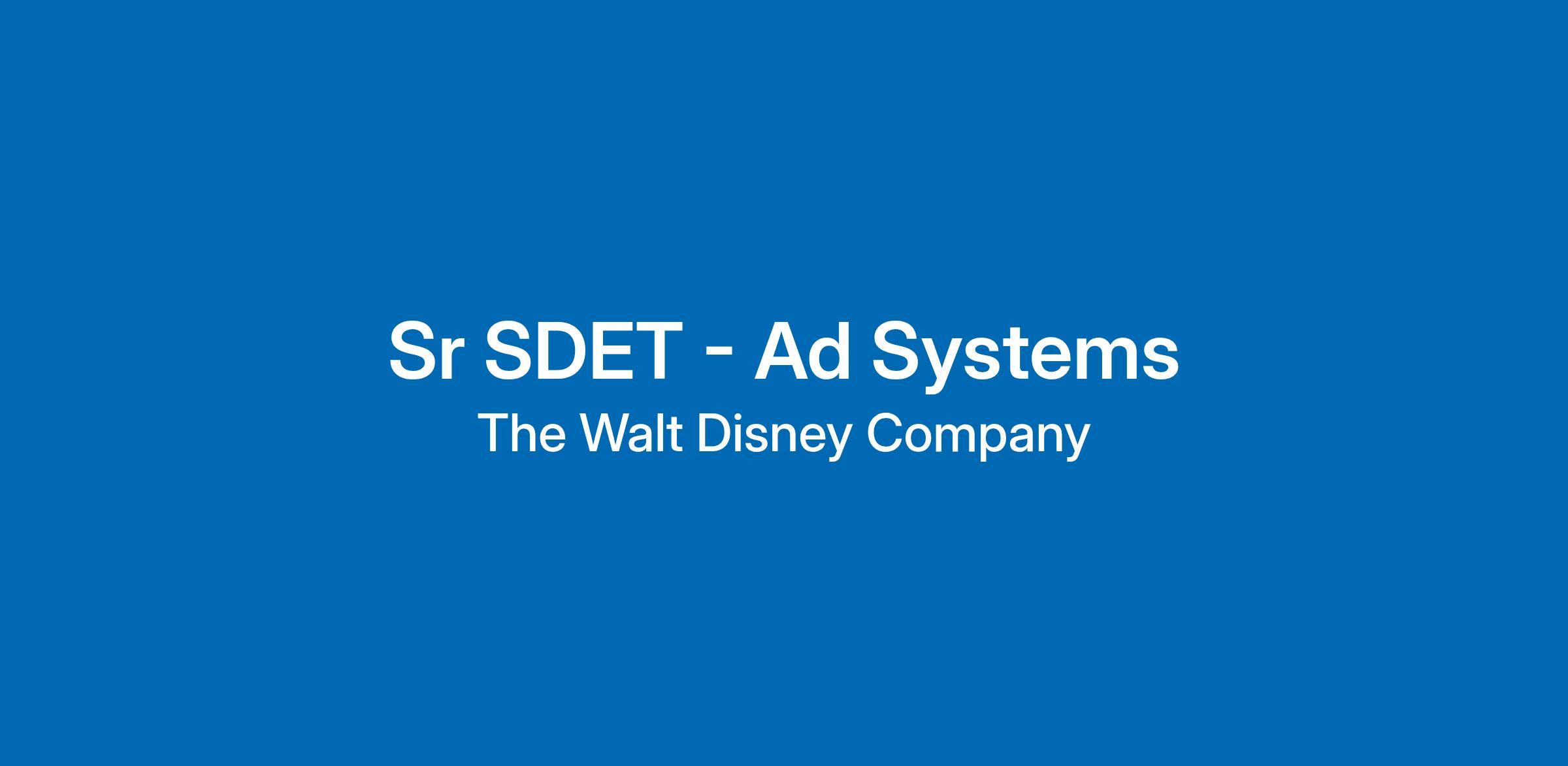 Sr SDET - Ad SystemsReq ID: